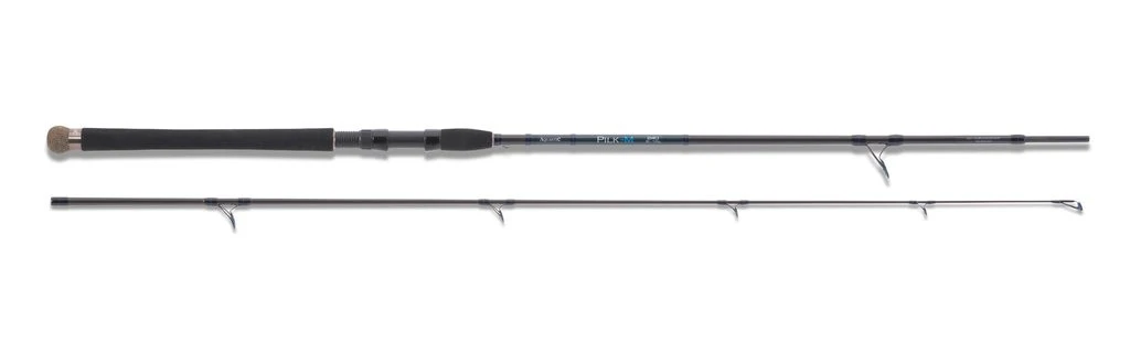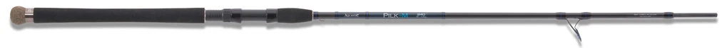 Die Aktion der Pilkruten im Aquantic-Programm ist semiparabolisch und damit eher klassisch gehalten. Ausgestattet sind sowohl die 120g wie auch die 180g Version mit einem hochverdichteten Kohlefaserblank, K-type Ringen mit blauer SIC-Einlage und einem hochwertigen EVA Handteil. Die Ruten sind recht schlank gehalten und durch ihr geringes Eigengewicht liegen sie gut ausbalanciert in der Hand. So ist gewährleistet, dass man über Stunden mit Spaß und ermüdungsfrei damit fischen kann. Diese Ruten sind als Pilk-M und Pilk-H verfügbar, wobei die Pilk-M ein Wurfgewicht von 30-120g aufweist und die Pilk-H von 50-180g. Es gibt die drei Längen 210cm, 240cm und 270cm.