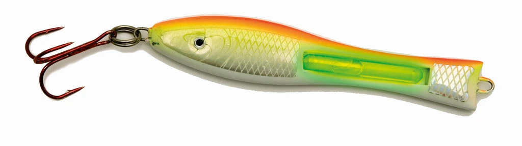 Es ist eine Tatsache, dass Leuchtköder in größeren Tiefen besser fangen als herkömmliche Köder. Diesen Umstand ist dieser Pilker geschuldet. Er ist in Gewichten von 100g, 200g, 300g und 400g erhältlich.