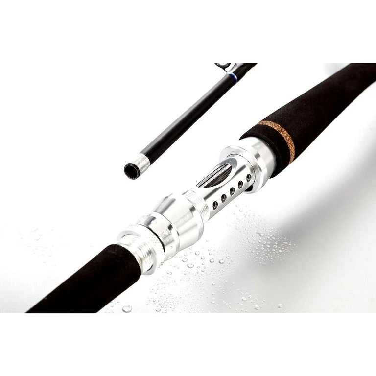Dies ist eine kompromisslose und vielseitige Bootsrute der Premium-Klasse. Sie ist gleichgeteilt und damit ideal für Reisen in den Norden. Die Rute ist mit stabilen und eng positionierten Ringen, Metall-Kreuzabschluss, verstärkter Steckverbindung sowie dem kräftigen und robusten Alu-Rollenhalter, der die Verwendung von Multi- sowie Stationärrollen erlaubt, ausgestattet. Am Rollenhalter wurde eine separate „Aussparung“ eingearbeitet, welche durch den gefühlvollen Fingerkontakt auf dem Blank jede noch so sensible Bewegung des Köders oder Fisches direkt zum Angler überträgt.