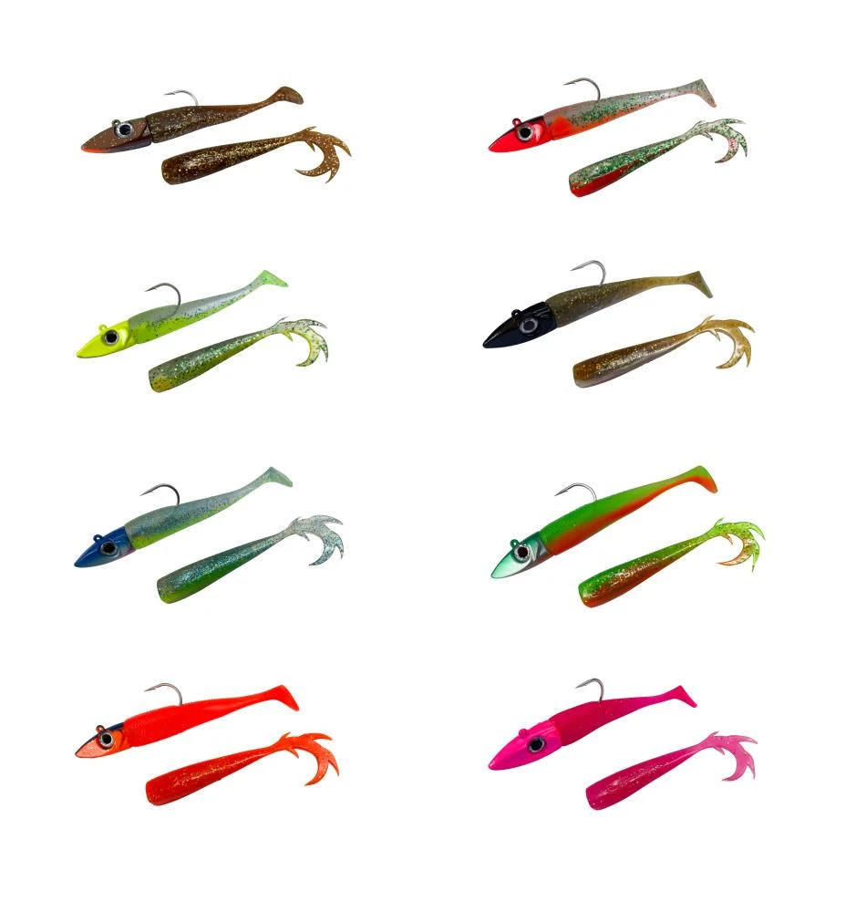 Der Softlure Flexxxi Mini ist Made in Germany. Er ist super weich, extrem haltbar, oohne toxische Weichmacher, leicht auftreibend und in vielen Erfolgsfarben und zwei Gewichten verfügbar. Der Erfolg ist Kopfsache! Er ist an einem Eisele-Twitcher Jig-Kopf montiert – Der Tänzer! Verwendet wird ein verzinnter VMC Carbon Jig-Haken 60° und eine 3D XL-Auge. In jeder Packung ist ein fertig montierter Shad mit Paddle-Tail und ein Ersatz-Body mit Dragon-Tail enthalten.