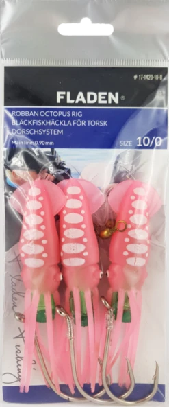Dieses Rig besteht aus drei pinkfarbenen 10cm Flügel-Oktopussen, welche mit weißen Punkten geschmückt sind. In jeden der Oktopusse befindet sich ein Flashlight, welches bei Wasserkontakt zu blinken beginnt. Dies erhöht den Reiz des Systems. Es gibt dieses Dorschsystem mit der Hakengröße 8/0 und 10/0. Diese sind an einer 0,90mm starken Hauptschnur befestigt.