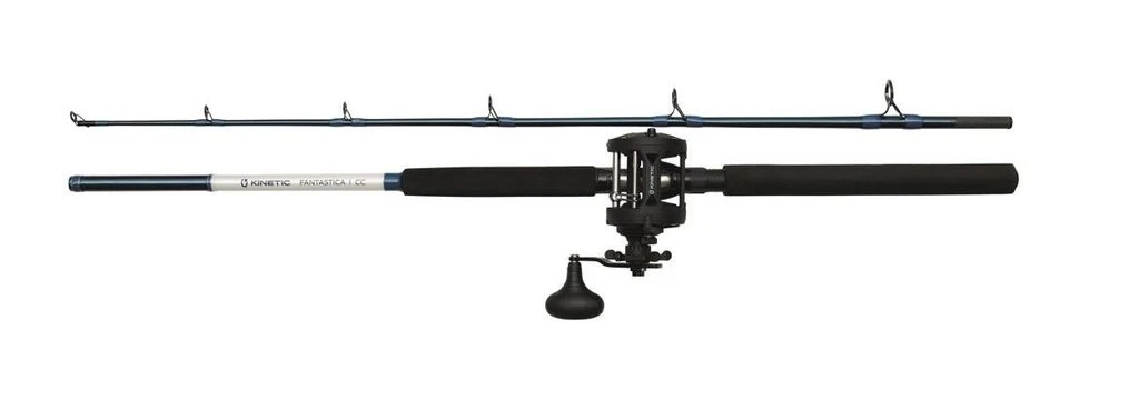 Die Salzwasserkombination Kinetic Fantastica CC eignet sich hervorragend für den Freizeit- oder Chartereinsatz und ist werkseitig aufeinander abgestimmt und einsatzbereit. Die Fantastica Levelwind-Rolle hat einen leichten, aber robusten einteiligen Graphitrahmen und Seitenabdeckungen aus Graphit. Die Spule besteht aus doppelt eloxiertem Aluminium, um korrosives Salzwasser abfließen zu lassen. Diese, für die lange Nutzungsdauer gebaute Rolle, verfügt über ein langlebiges Hauptgetriebe aus Messing und Ritzelzahnräder aus Edelstahl, ein Edelstahlkugellager, einen Edelstahl-Schnurführer und eine Aluminium-Kurbel. Die Bootsrute Fantastica CC verfügt über eine haltbare Glasfaserblankkonstruktion, EVA-Schaumstoffgriffe, einen haltbaren Rollenhalter und dreibeinige korrosionsbeständige Rutenringe. Diese Rute und Rollen Kombination gibt es sowohl als Rechtshand- wie auch als Linkshand-Modell.