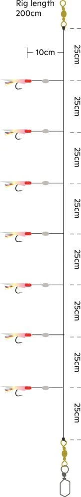 Das Kinetic Sabiki MaxCatch hat 7 Haken und die Stärke, um Ihren Eimer schnell zu füllen. Kleine, aber kräftige Haken biss-provozierender Fischhaut und Flash-Fibern funktionieren nun mal perfekt!