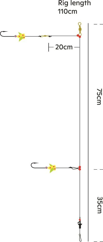 Das Brandungsangeln auf felsigem Grund ist oft heikel. Mit diesem schwimmenden Lift-Vorfach bleiben Ihre Haken frei und die drehende Spinnerperle zieht Fische von weit her an.