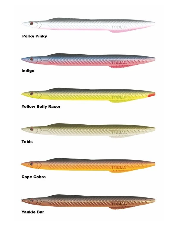Im Wasser ist Tobias eine großartige Imitation eines Sandaals – vielleicht die wichtigste Beute für große Meerforellen, die im flachen Wasser jagen. Mit seiner aerodynamischen Form kann man ihn weit werfen und beim Einholen hat er eine großartige, unregelmäßige Aktion, die Fische von weit her anlockt. In jeder Packung eines Tobias-Köders ist der entsprechenden Drilling, Sprengringe und Perlen enthalten. Sie brauchen diese noch noch an einer Fluocarbonschnur montieren und schon kann die Jagd beginnen. Es stehen verschiedene Farben und Gewichte zur auswahl.