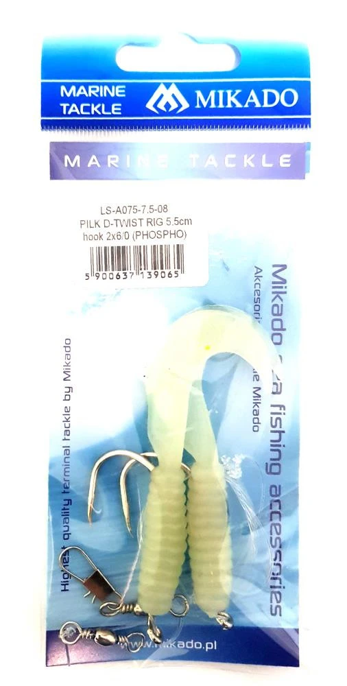 Verfügbar ist das Vorfach mit einer Twistergröße von 5,5cm (4/0) oder 7,5cm (6/0) mit jeweils 2 Haken. Es ist somit ideal für Dorsch un Seelachs.