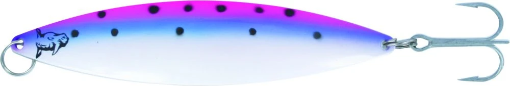 Altbewährte Form in neuem Look! Bei diesem Trollingspoon kann man in Bezug auf die gewählte Geschwindigkeit kaum einen Fehler machen. Bei langsamer Fahrt taumelt er verführerisch und bei schnellerer Fahrt schlägt er schnell, rotiert aber nicht. Wir sind uns sicher, dass sehr viele Trolling-Fans diese Form ergänzend zu den bisherigen Rhino-Blinkern in ihre Köderboxen übernehmen.