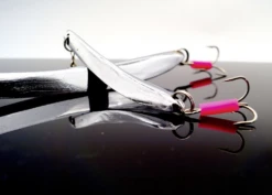 Mit dem Rhino Sandaal-Baitholder ist es möglich, sowohl Sandaale aus Gummi (im Lieferumfang enthalten) als auch entsprechende Naturköder einzusetzen. Beim Einsatz echter Sandaale wird das Haken-Rig von hinten durch die Kiemen durch das Maul geführt und in der Öse im Kopf gesichert, während der Haken an der Flanke eingestochen wird. Die Sicherung des Köders in Kopf erfolgt mit einem Zahnstocher. In der ausgelieferten „ready to fish“-Variante ist bereits ein naturgetreuer Sandaalschwanz montiert. Sein Laufverhalten ähnelt dem eines natürlichen Sandaals sehr, je nach Anströmung schwänzelt er nicht nur, sondern bricht ab und an seitlich aus – bis hin zu einer ganzen Rolle um die Längsachse. Dieses Laufverhalten scheint den Räubern sehr zu gefallen, denn unzählige Fische wurden schon in der Testphase überlistet. Die Attacken waren teilweise so hart, dass vom System nur noch der Kopf aus dem Maul herausschaute. Ideal einzusetzen bei Geschwindigkeiten zwischen 1,5 und 2,5 Knoten. Die Ersatzschwänze sind auch einzeln zu erhalten. Der Köder ist 20cm lang und 25g schwer.