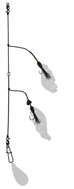 Dieses Vorfach ist in zwei verschiedenen Ausführungen verfügbar. Jedes dieser Dorsch-Rigs besitzt zwei Haken der Größe 2/0 und Lockperlen, welche einen zusätzlichen Reiz auslösen. Dies sind Basisvorfächer für das erfolgreiche Brandungsangeln.