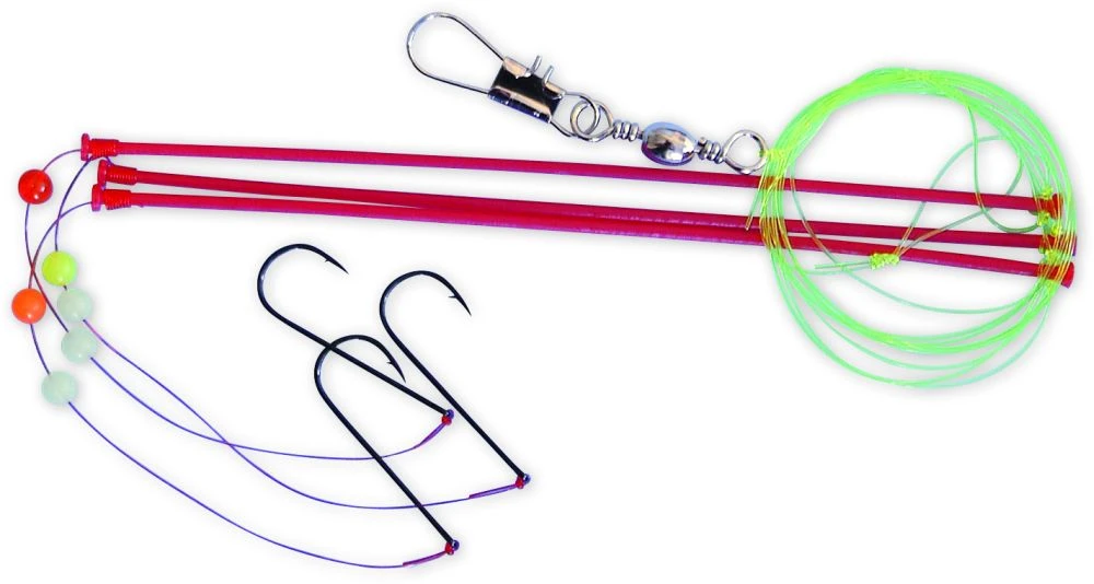 Dieses Standard Plattfischvorfach ist speziell für das Angeln vom Boot konzipiert. Es gibt zwei verschiedene Varianten mit Hakengröße 4 und 6. Die Hauptschnur hat eine Stärke von 0,60mm und die Seitenarmen von 0,40mm. Das Vorfach besitzt 3 Haken und ist 120cm lang.