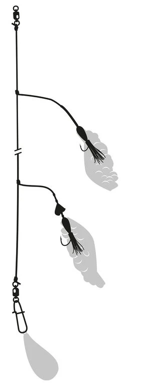 Dieses Steinbeißer-Vorfach besteht aus zwei Einzelhaken 8/0 für einen Fischfetzen, sowie jeweils einen selbstleuchtenden Oktopus. Die Hauptschnur hat ein Stärke von 1,00mm mit einer Tragkraft von 50Kg. Die Gesamtlänge beträgt 115cm. Das Vorfach ist ideal für das Bootsangeln auf Steinbeißer. Die Lieferung erfolgt auf einem runden Aufwickler.